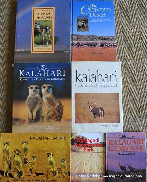 Two of our favorite Kalahari books are The Kalahari - Survival in a Thirstland Wilderness, by Nigel Dennis and Peter Derich's Kgalagadi Transfrontier Park.