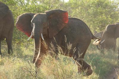 While on holiday at Mjejane (border Kruger) we spotted this Elephant, amongst the herd, that seems to be an Albino. He was very pink on his under body and ears and his eyes were also red. Can some one please tell me if they think this is an Albino or not.