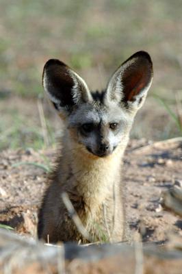 On some of our visits to the Kalahari we have a few sightings of bateared foxes and on other visits they are so scarce. On our last visit to Nossob this was our one and only sighting - he popped up out of his hole, allowed us to take a few pictures and then he was gone.