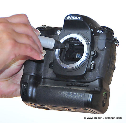 We see so many people holding the camera facing up and blowing down – all this does is blow the dust around inside the body. By turning the camera body upside down and blowing up, gravity ensures that the dust falls out.