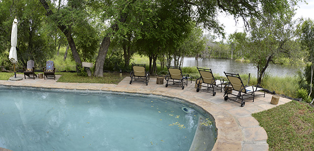 The swimming pool has a nice view overlooking the large dam that often has animals drinking and hippo’s lazing around.