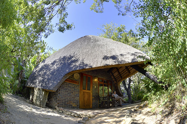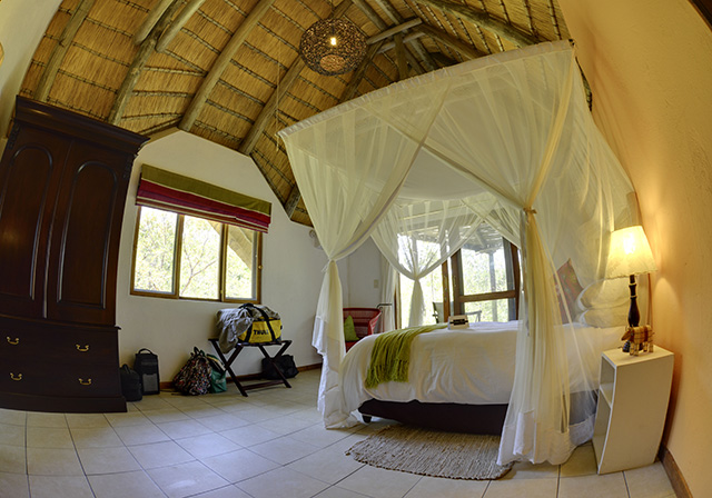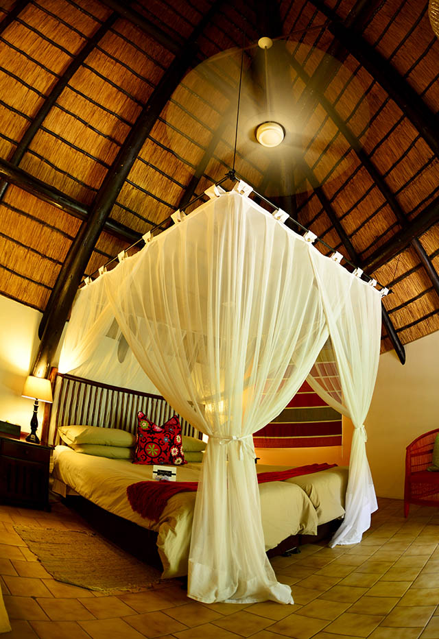 The Lodge has eight thatched chalets that blend beautifully into the indigenous gardens. The six standard chalets have double or two single beds, air-conditioning, en-suite shower, mosquito net, tea and coffee station and a veranda which looks into the gardens.