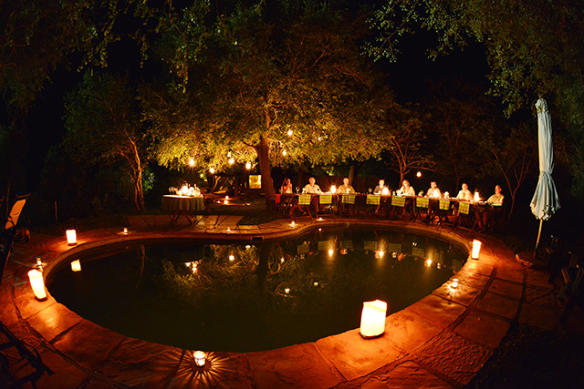 Each night we had dinner at a different venue – the dining room, boma and around the pool. The boma was most enjoyable with lanterns all around us, even in the trees above us...