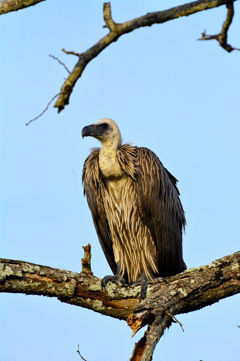 After an hour we left the rangers to do their jobs and found another male lion with a Kudu kill a few kilometers from the camp, a large group of vultures on a termite mound feeding on the termites, a Reed buck and a Giant Eagle Owl at the bridge.