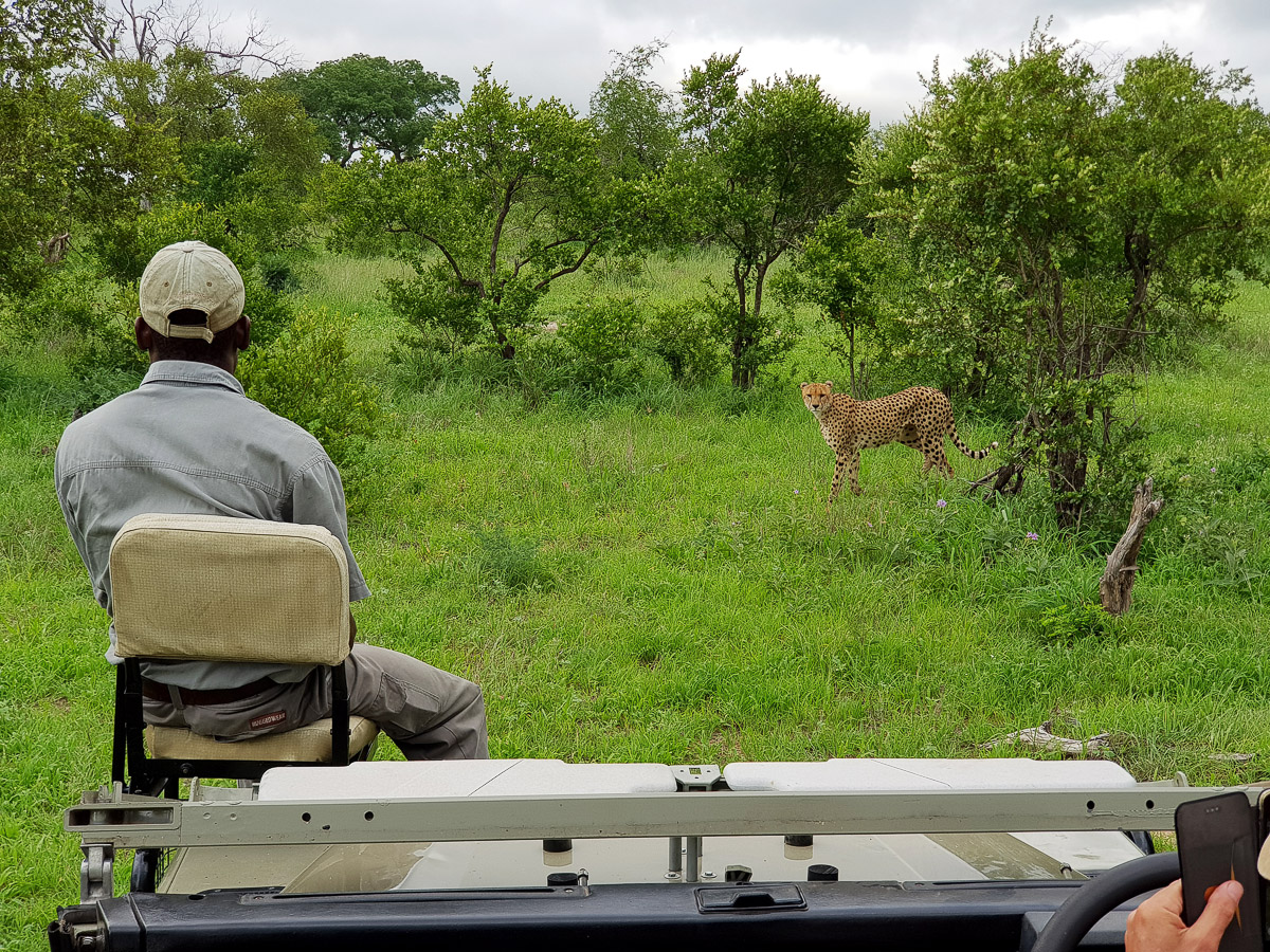 So far we had seen the big-five animals but had not found either wild dogs nor cheetahs but that morning we got two cheetahs stalking a steenbok- but it got away!