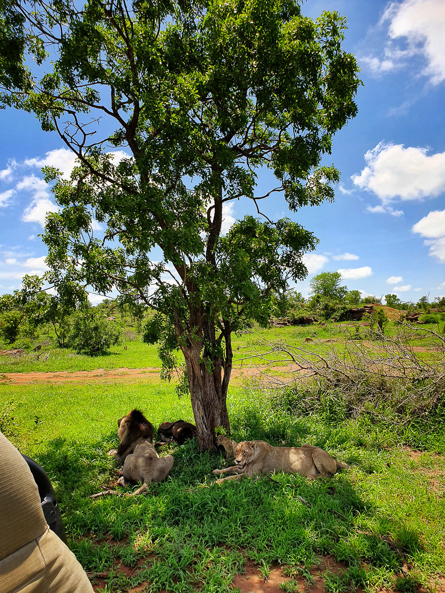 We realised that by the afternoon the lion could be finished with the meal so after breakfast Mpho and Leon took us to find them.