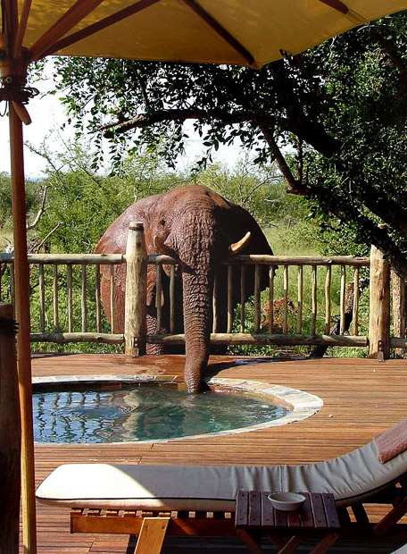 What I enjoyed was the big bull elephant that paid us a visit at the lodge, Mario grabbed his camera and I ran out after him. We got the elephant just in time because he was behind reception then walked past the swimming pool and our suite then down past the deck on his way to the waterhole….what a great experience!