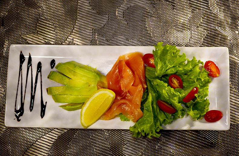 Our four course dinners were all tasty and well presented; for starter we had Salmon and Avocado followed by pineapple sorbet, for the main course we had grilled kingklip with shrimp sauce and dessert was a trio of chocolate.