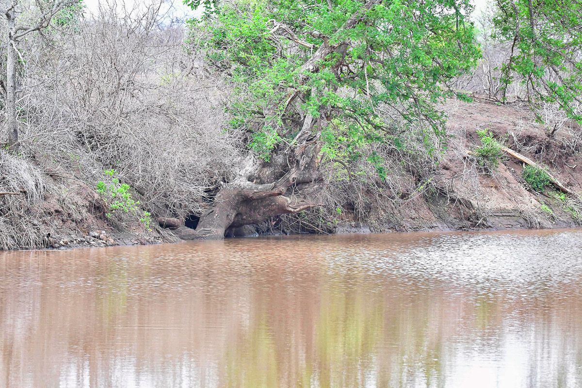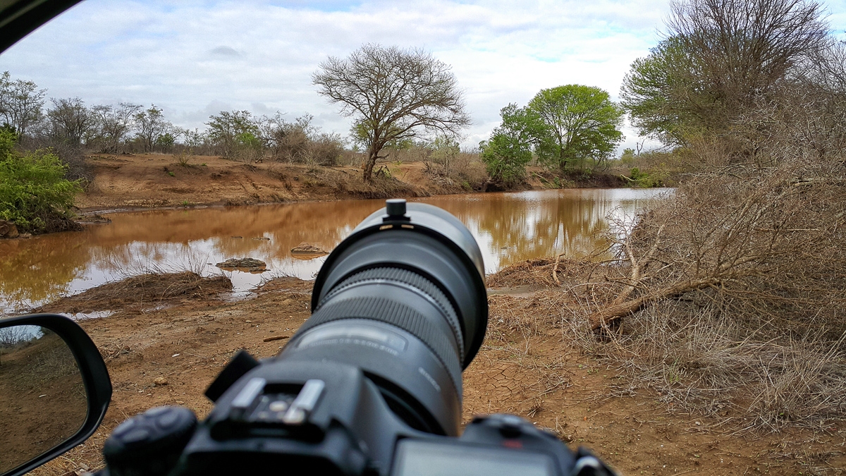We were travelling south on the S41 dirt road, heading towards Sweni hide, and we stopped on the N’wanetsi causeway and scanned the area with our 10 x 50 binoculars.