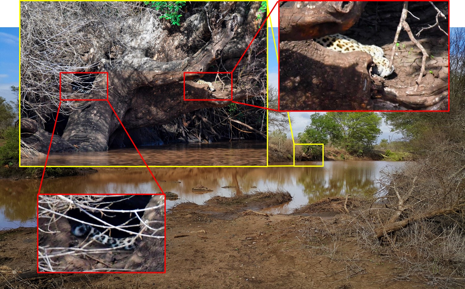 … and saw a hidden leopard sleeping/resting in a hollow tree trunk!