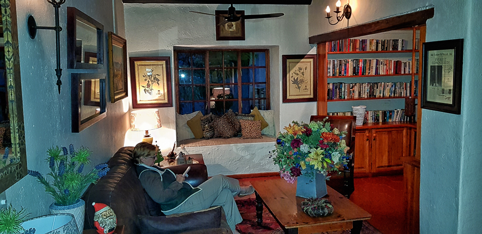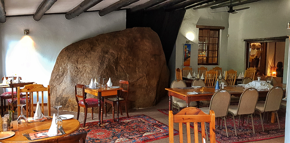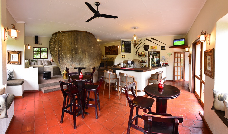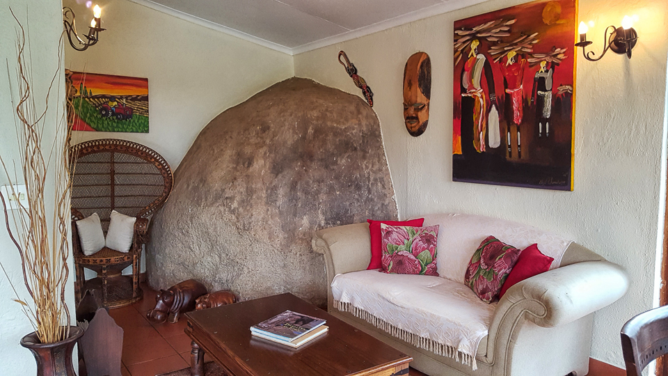 The lounge - we love the fact that the lodge has been built around these huge boulders!A large lounge with fireplace links the restaurant and another seating area that leads out onto the garden.