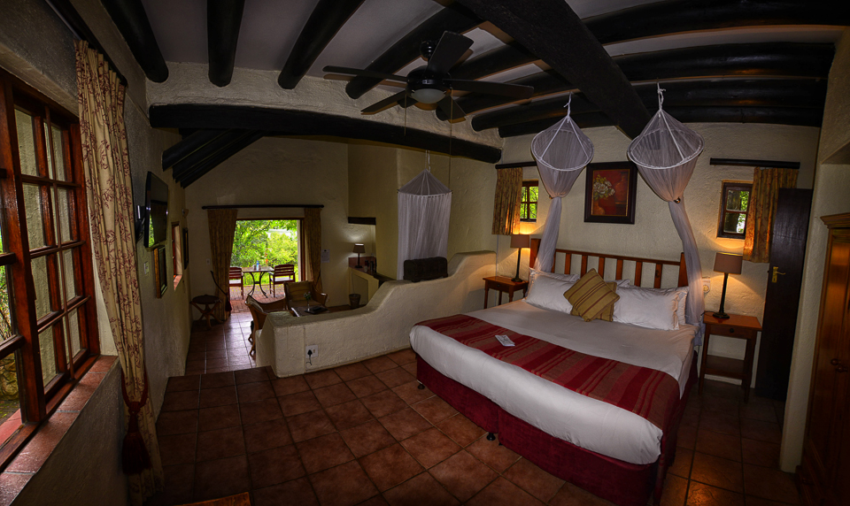 The suites have mosquito nets, tea and coffee stations, hairdryer, fan satellite TV and en-suite bathrooms, a lounge or seating area and some have a wood-burning fireplace.