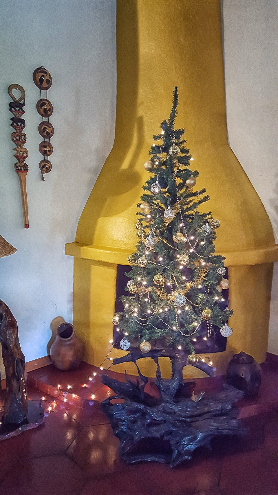 Christmas tree in front of the lounge fireplace. Yes, the winters can get cold so there are fireplaces in all the suites and throughout Hulala Lakeside Lodge! |