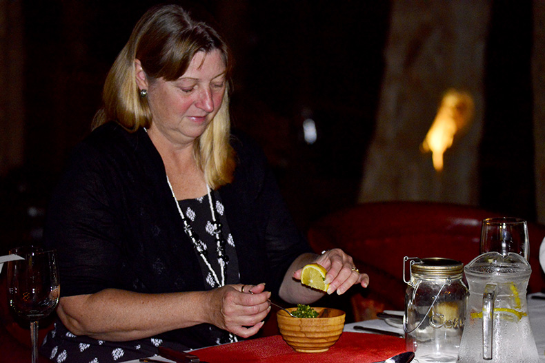 Jenny putting lemon into the chilli dipDinners are setup in different areas depending on