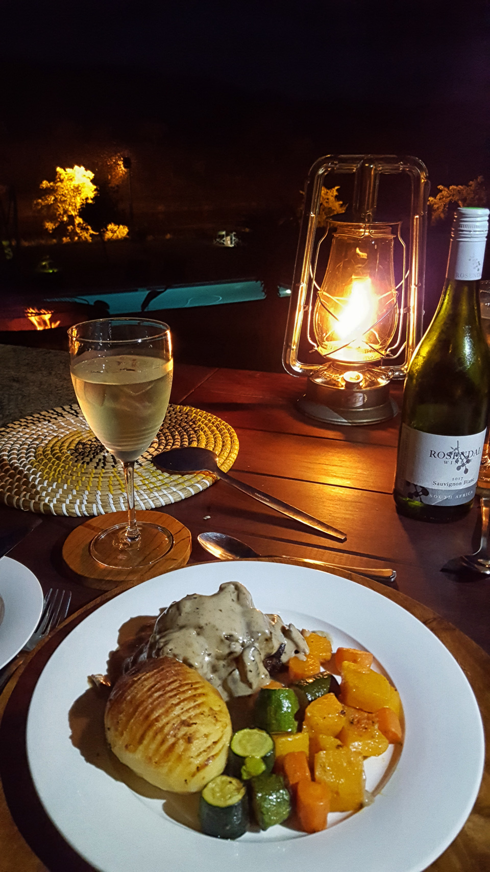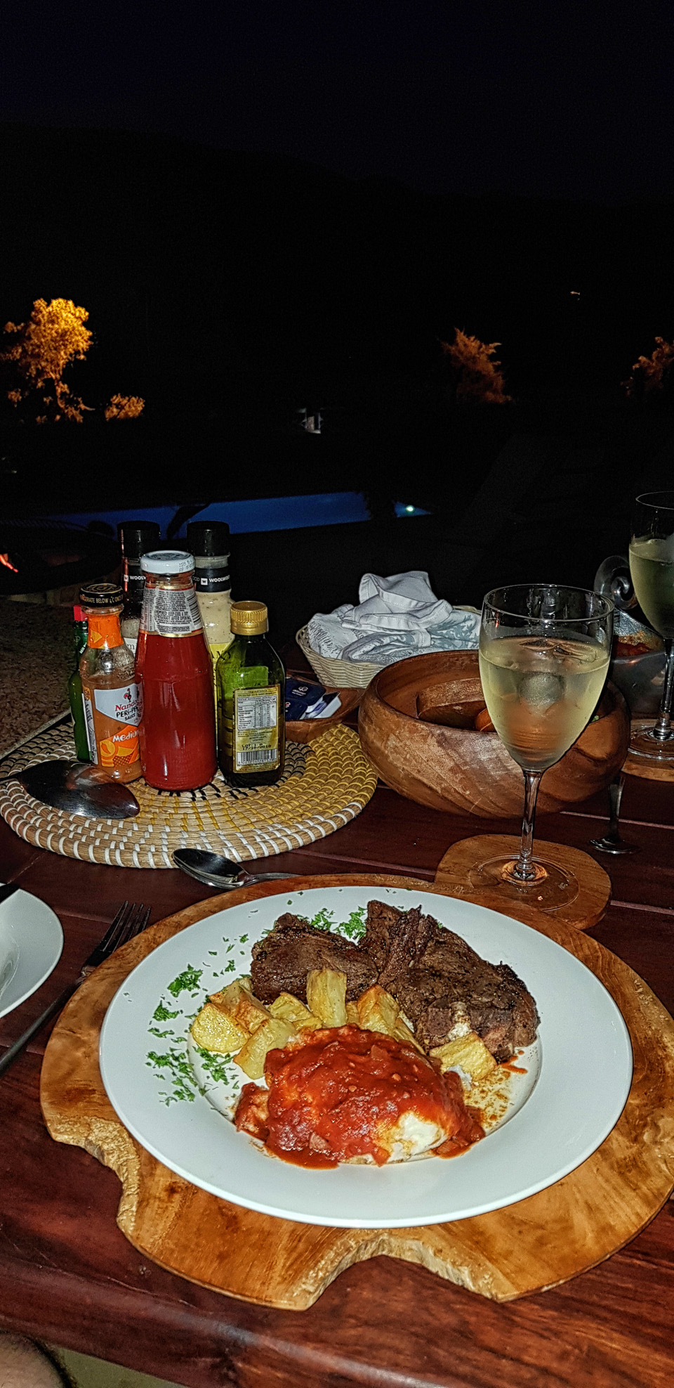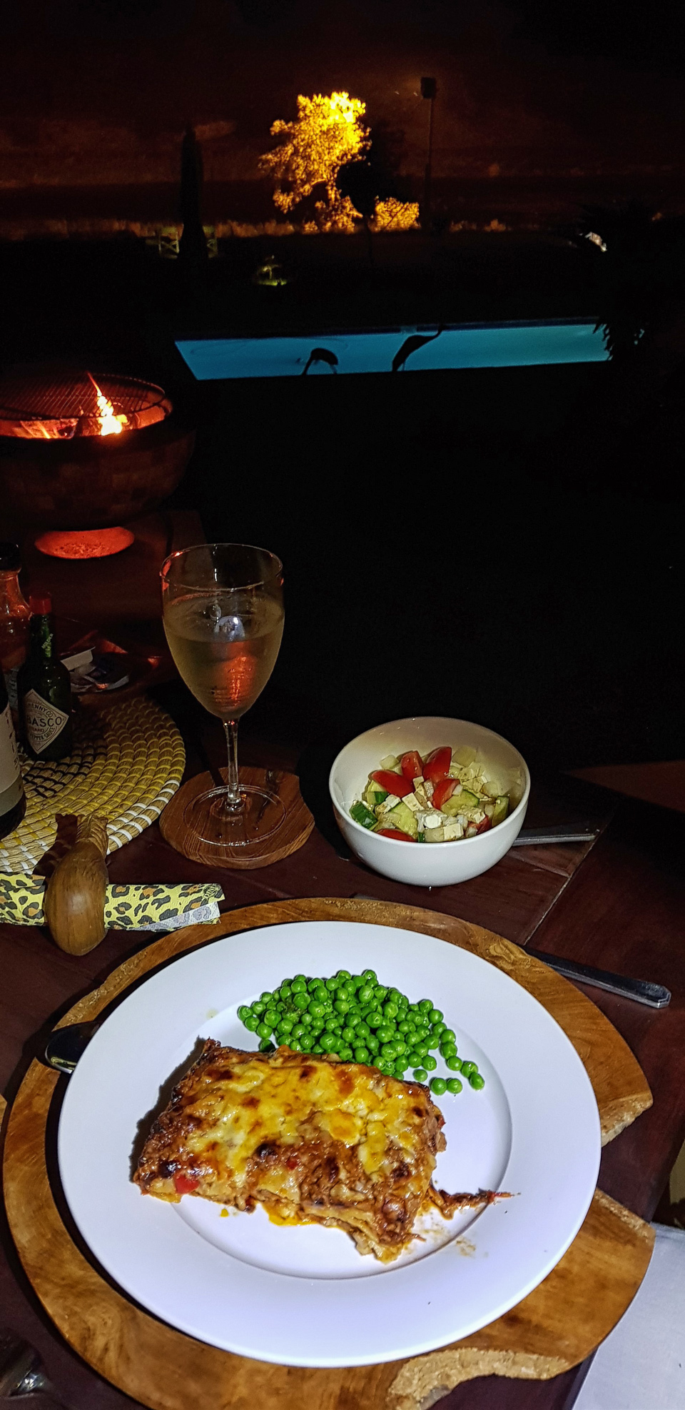 Just before dinner our fire-pit was lit giving that romantic feeling with pure relaxation while we enjoyed our meal with a glass of wine.
