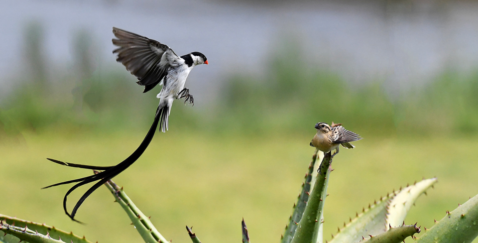 The pin tailed whydah was the boss at Kambaku River Lodge! He was courting all the females and chasing the other males - he entertained us everyday! |