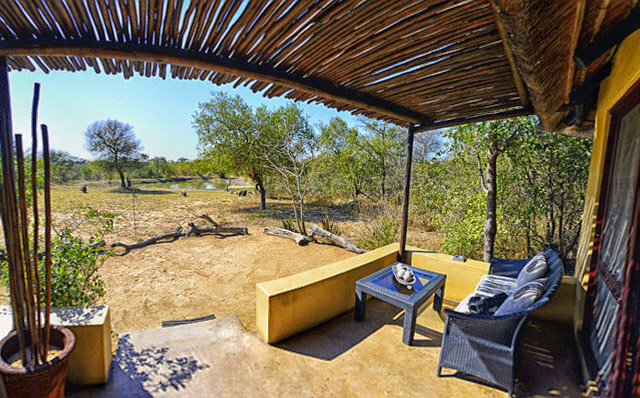 Four of the chalets; Mafunyane (5), Ndlulamithi (6) and then Shawu (7) and Joao (8) have inter-leading doors linking them together, which makes them versatile for either a twin room or a family unit. All have private verandas with views of either the garden or waterhole.