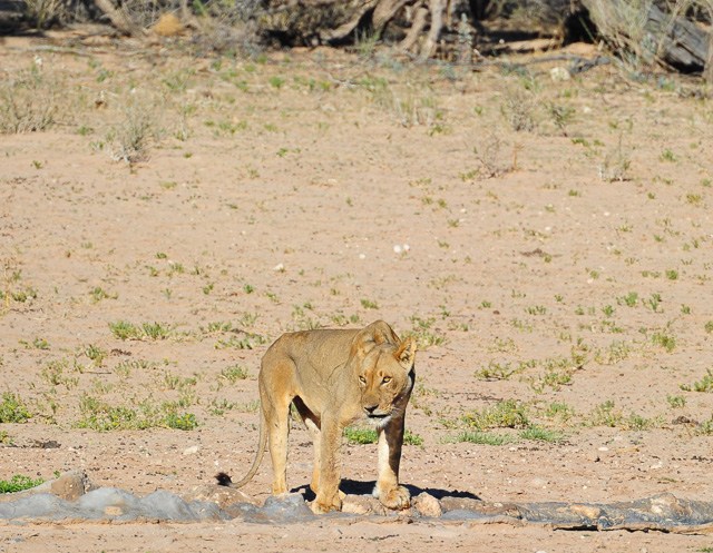 That night a lioness came down to drink but she was very jumpy and did not drink. She came to the waterhole four times that night at around 20h00, but did not drink!