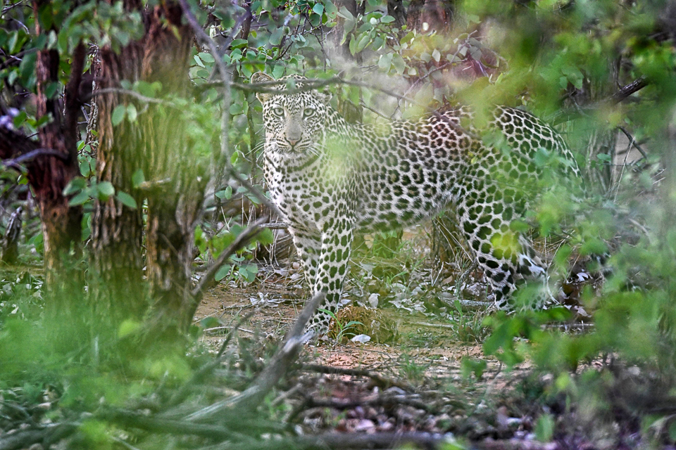 The next morning we left as the gates opened but could not find the leopard so we headed towards Satara. The morning was very quiet and then we checked the Latest Sightings app - the leopard was in a tree back at Tamboti camp!