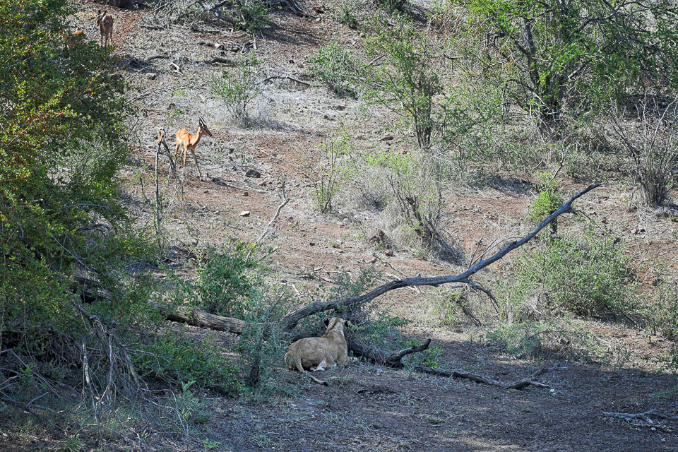 The lioness didn't chase as the buck sensed her and ran away each time!