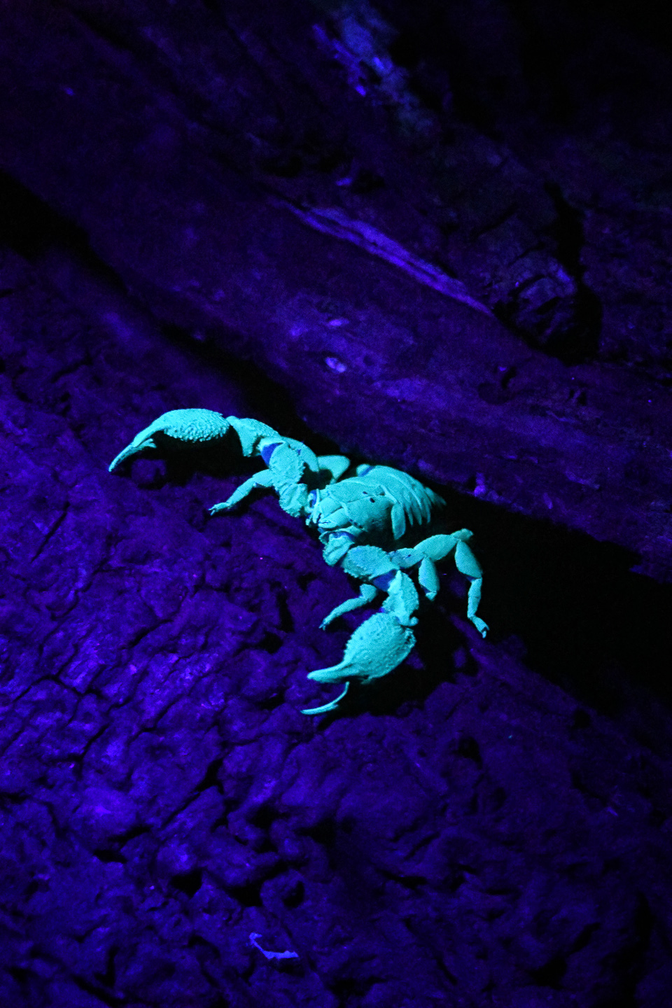 In Letaba Camp we photographed scorpions that lived in the Mopani tress...
