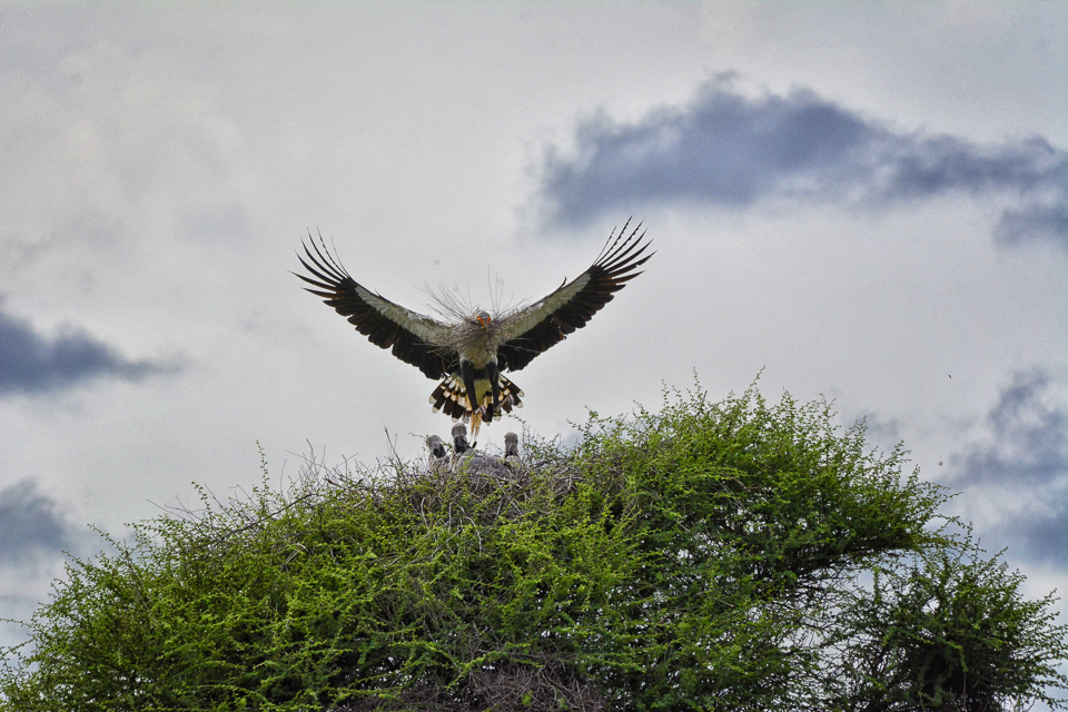 We also watched a Secretary bird collecting grass for its nest and feeding its chicks...