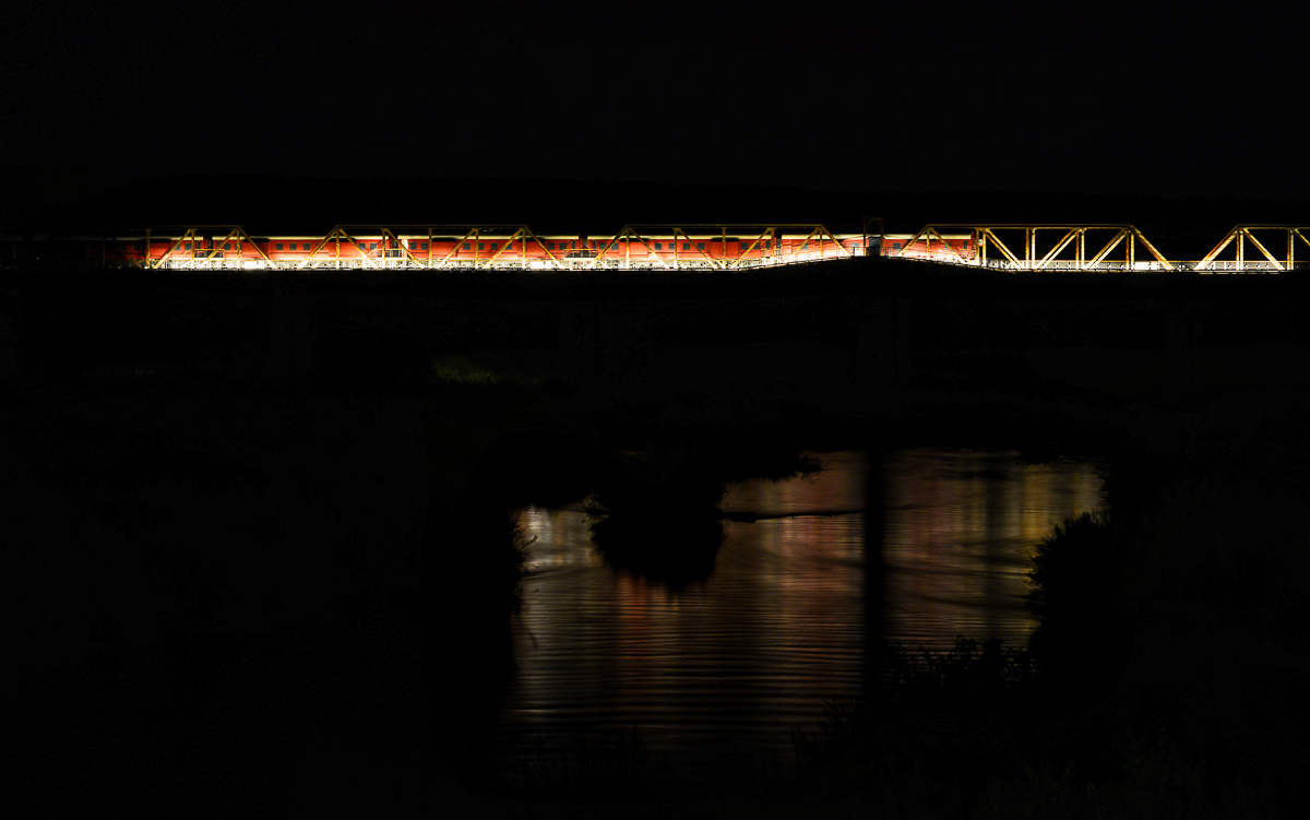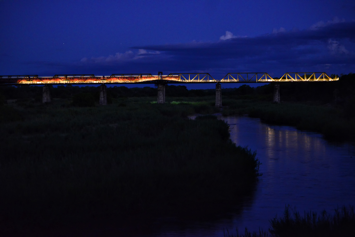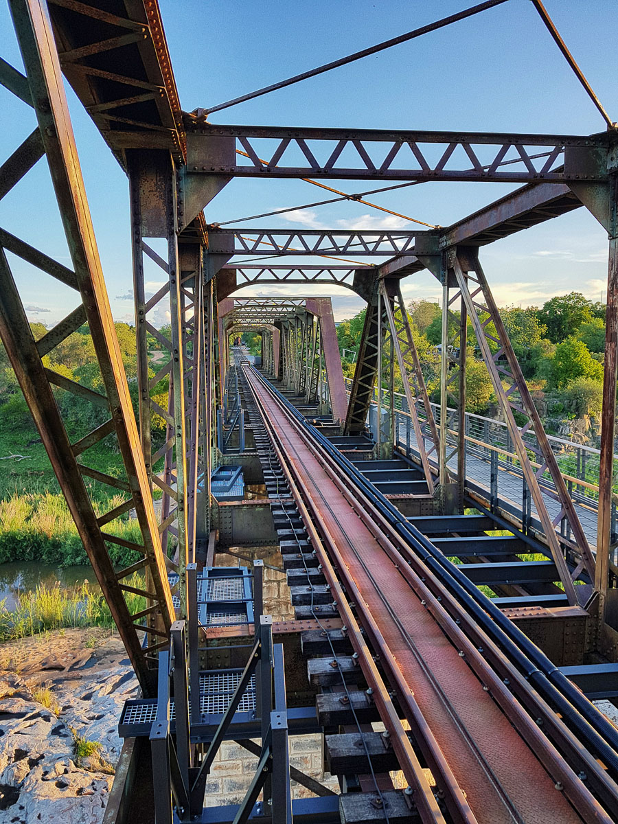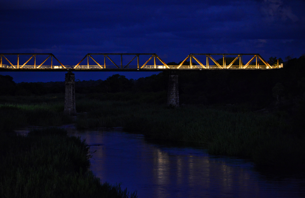 Selati bridge at sunrise before the arrival of the Shalati train on the bridge. Captured from the Cattle Baron deck.The Selati Railway line was disbanded in 1973 when it was realised that it caused disturbance to the plant and animal life in the Kruger National Park, and a new route was built that bypasses the reserve and follows the western border of the park instead of entering into the park..