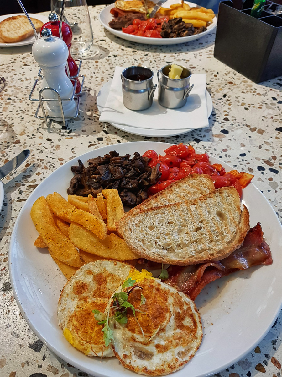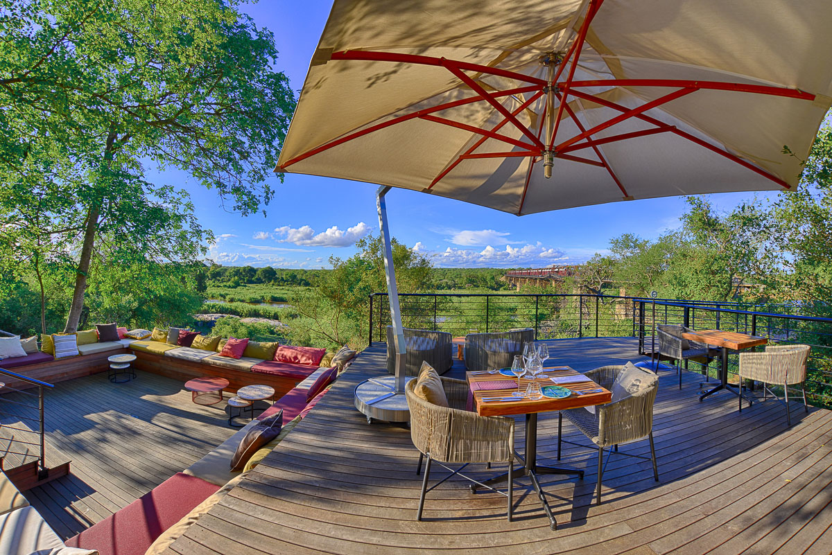 Guests have a choice of either eating indoors or sitting outside on a spacious wooden deck overlooking a tree lined garden and the Sabie River.