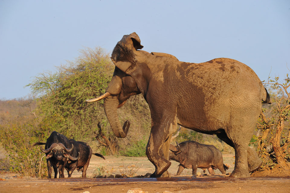 Shikumba KoppieWe spent some time at Sable dam, where there is a sleep-over hide, and got elephants drinking, a Fish eagle and a plover interacting and buffalo wallowing.