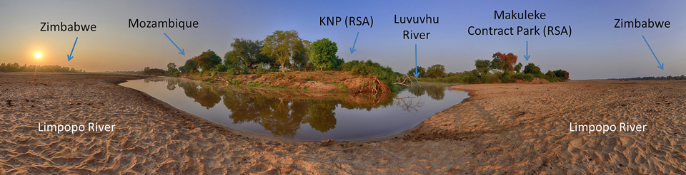 Grove of palms at panOne morning we went down to Crooks Corner and photographed it from the middle of the Limpopo River