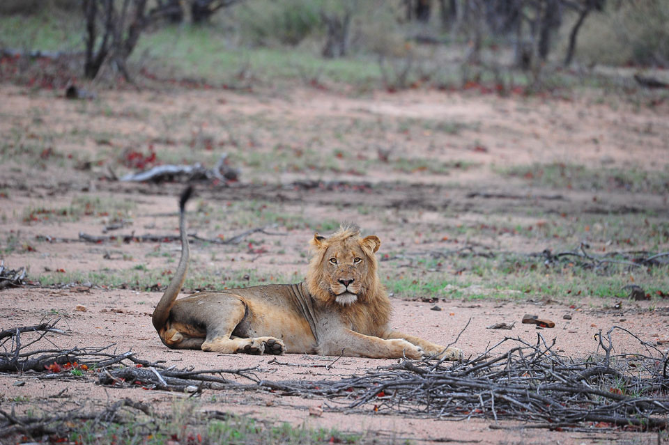 We arrived at Phalaborwa gate at 14h00 and took a slow drive up to Mopani Camp where we spotted a young male lion lying in the open on the H1-6 road.