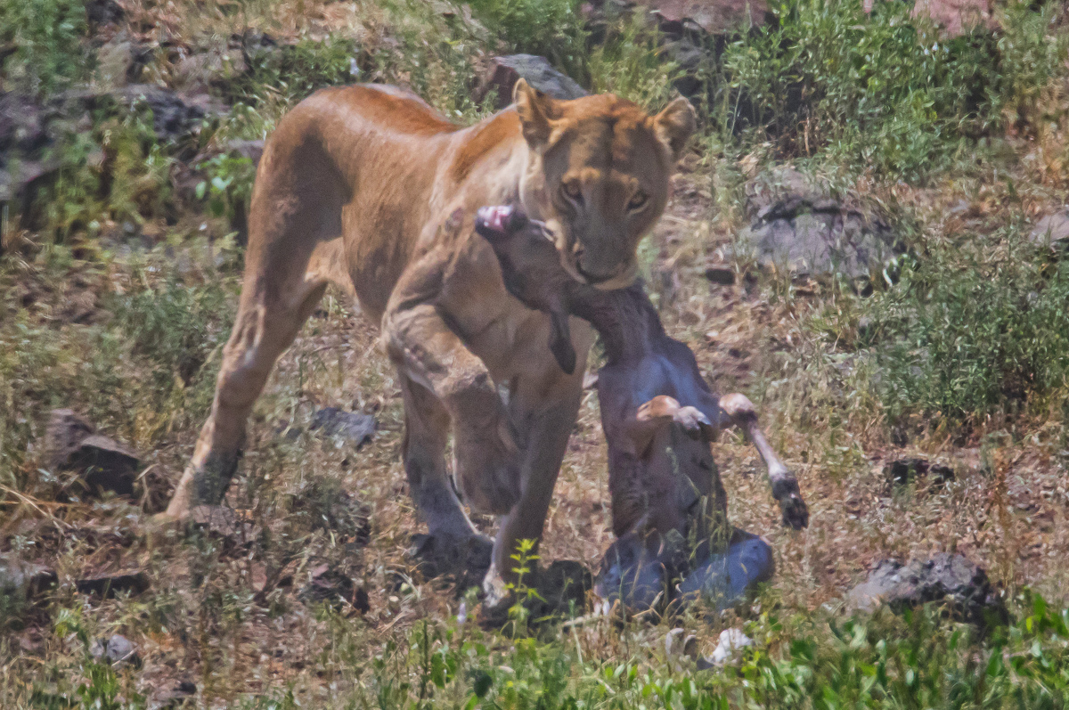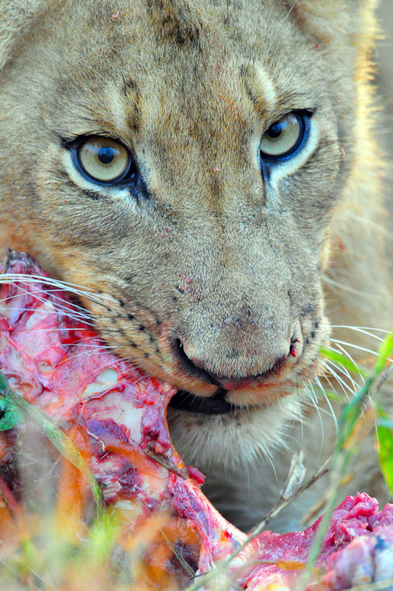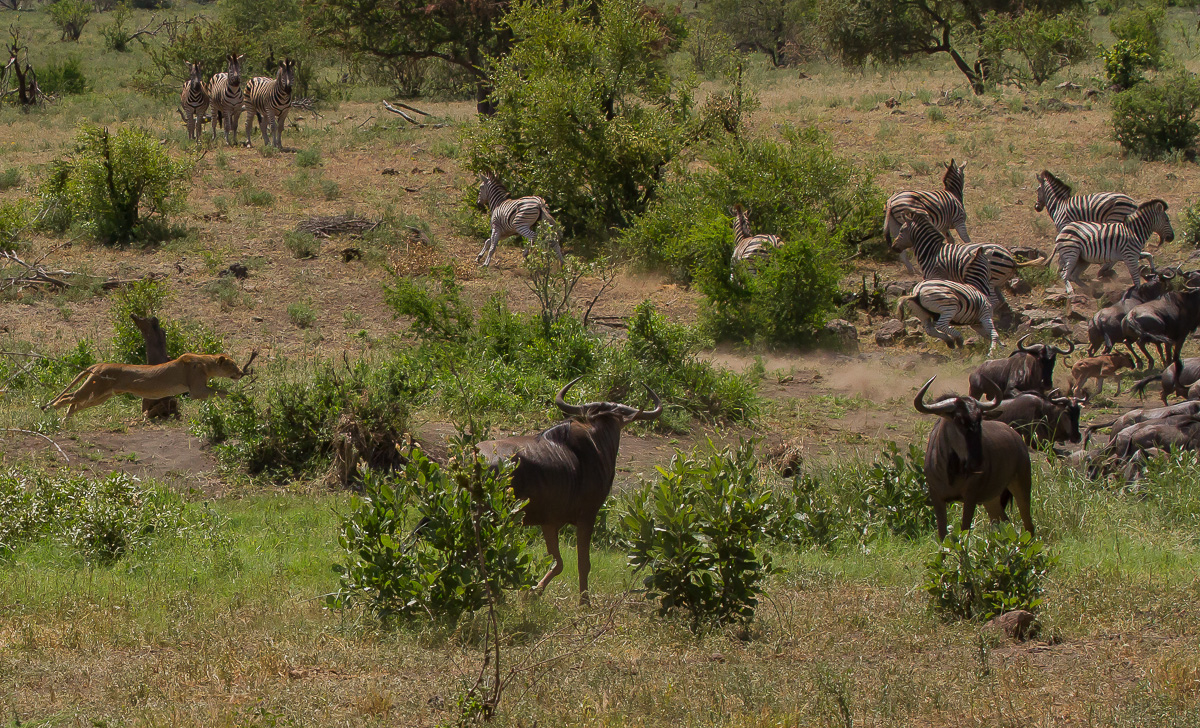 The shot we missed. We were watching a pride of lions on a giraffe kill on the S86 N'waswisonto loop and the cubs were on the carcass and the adults were lying to the side with vultures swooping in and out. Where to focus? We focused on the cubs feeding and so missed the lioness leaping into the air to try and catch one of the vultures!Lions tend to be the animal most visitors want to see. Hearing a lion roar is an unforgettable experience - the roar is so powerful that it can be heard up to five kilometers away! Lions have always been associated with leadership and royalty (the Lion of Judah!) and it's estimated that there are around 2000 lions in the Kruger National Park.