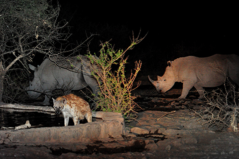 On our last evening game drive we sat at a deserted waterhole waiting for something exciting to happen and it did.