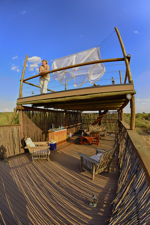 Then the second level is the covered lounge/seating area with a tea / coffee station plus an open seating area and the top or 3rd level is the bedroom which is open to the great African sky.