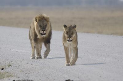 After half a day where we didn't see a lot we saw these 2 lions on the road