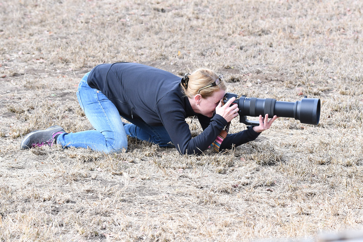The hornbill was on the ground so the photographers got down low to capture their images...!