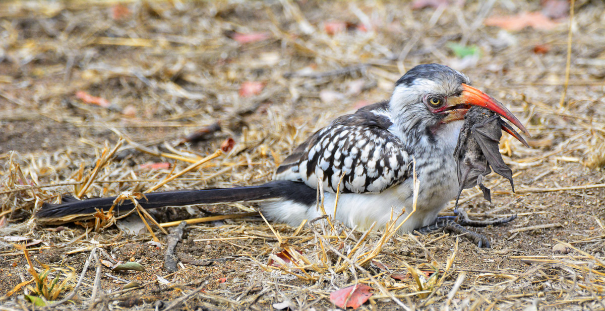 and, back at camp, we found a Redbilled Hornbill with a bat kill which it was trying to swallow. A great day for unusual sightings.