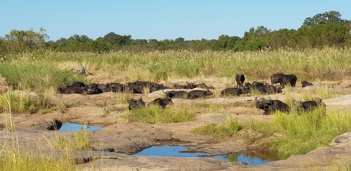 At the Sabie low-level Bridge we found a herd of Buffalo lying in the river and on the sand bank and the lighting was perfect on them.