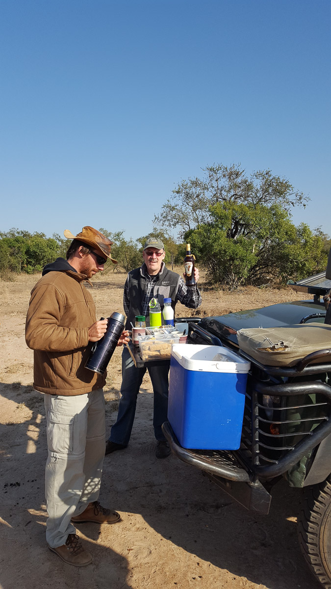 On game drives, the field guides usually stop in the mornings for coffee and rusks (coffee with Amarula is the best!) and then at sunset for sundowners. We stopped only a few times for these breaks on this safari as we had so many good sightings! At some lodges the field guides have pulled out of sightings (we were watching a cheetah stalking impala) as it was now time for the morning coffee break!! We are grateful that Armand gave priority to the sightings and not to the coffee stops and sundowners!