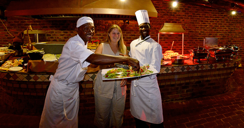 Our two buffet dinners were nice - on our first night we had braai meat; lamp chops, wors, beef stew, pap and gravy, vegetables and desert. The 2nd night was also buffet style but you could also choose from the a-la-carte menu, but we stayed with the buffet.