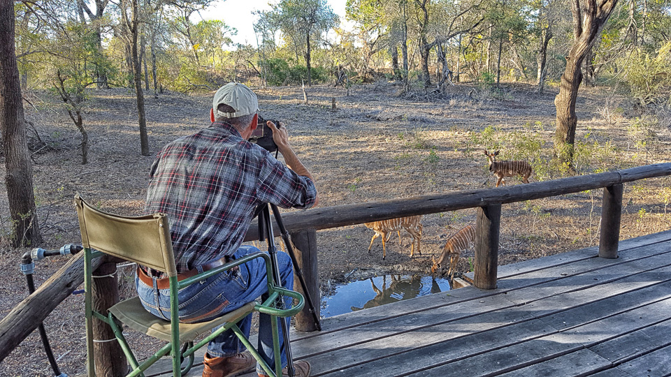 The small waterhole is a new addition to the lodge and is right in front of the wooden deck, so you can sit and relax while the animals come down to drink.