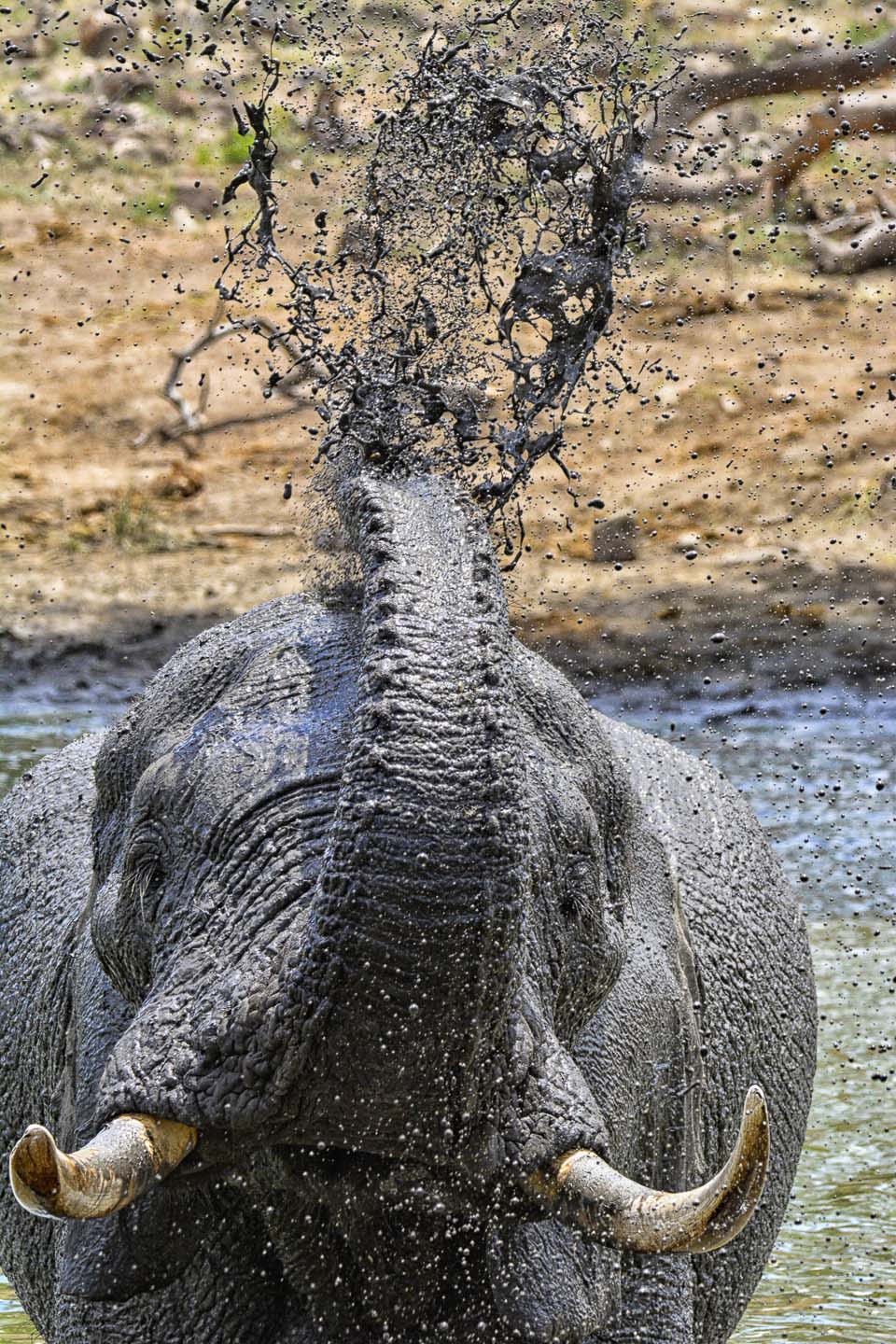 The bucket showerWe had a few visitors in camp; a dagga boy (buffalo bull) came into camp one night, leopard spoor was seen outside Biff’s tent but no one saw him….maybe just as well - and the thick tailed bush baby family entertained us in the tree tops while a male Nyala stayed most nights.