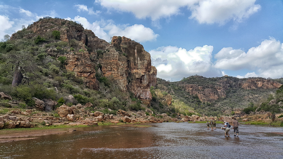 Just a short drive in an open game viewing vehicle to a spot in the bush and then the 5km walk begins. Our first walk was in Hutwini Gorge, which has some lovely scenery.