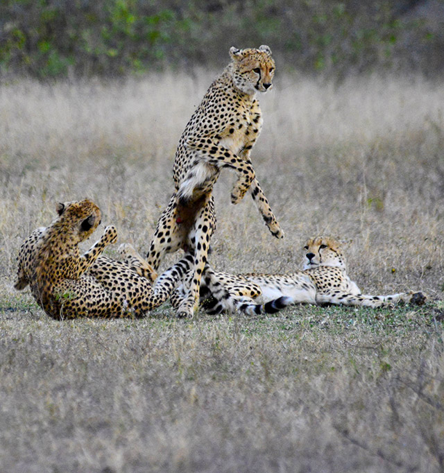 We then went out at 16h00 on a game drive and found the 4 cheetahs (a female with 3 adolescents), still on the S25, about a kilometre past the Lukimbi turnoff.