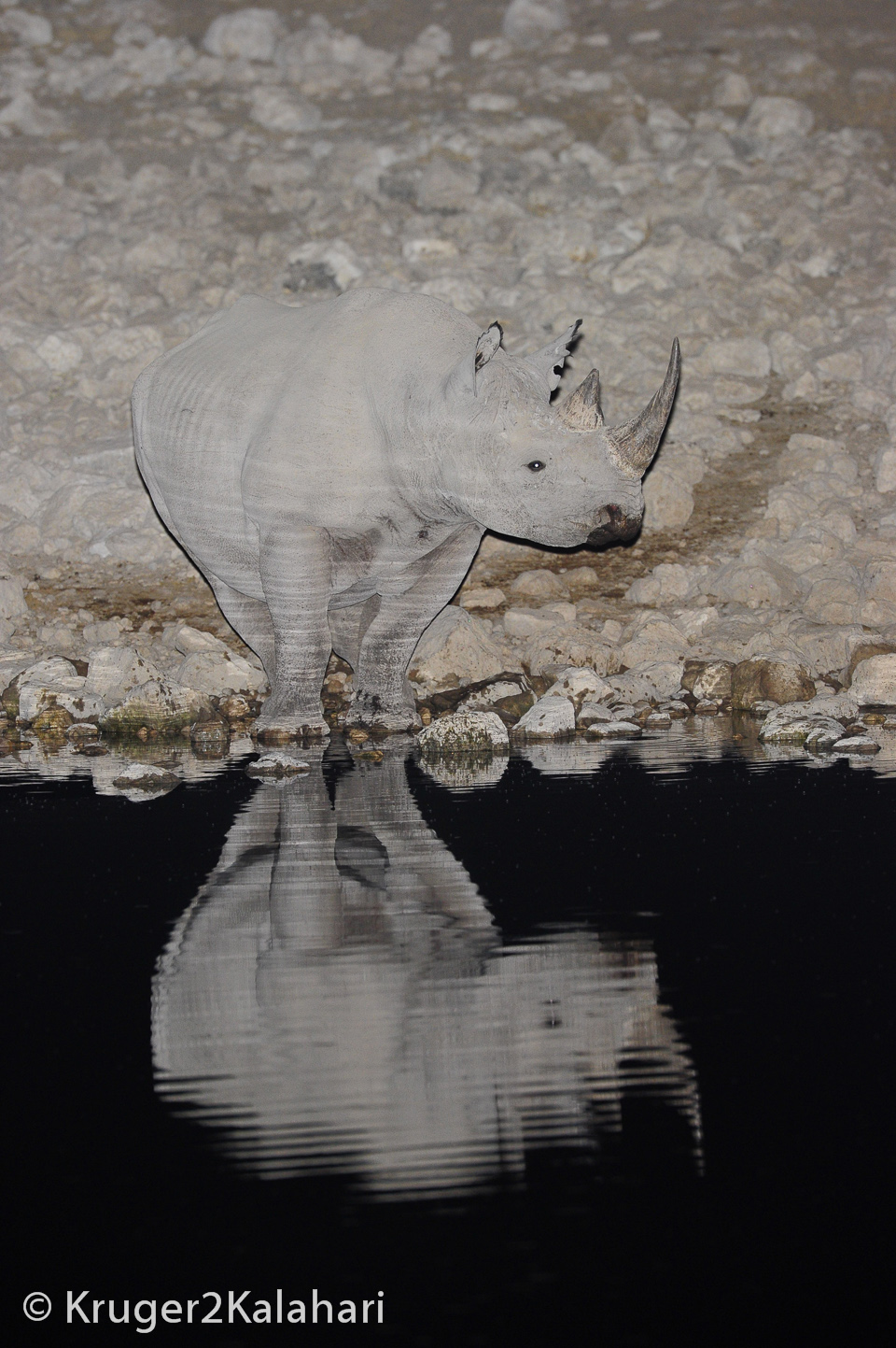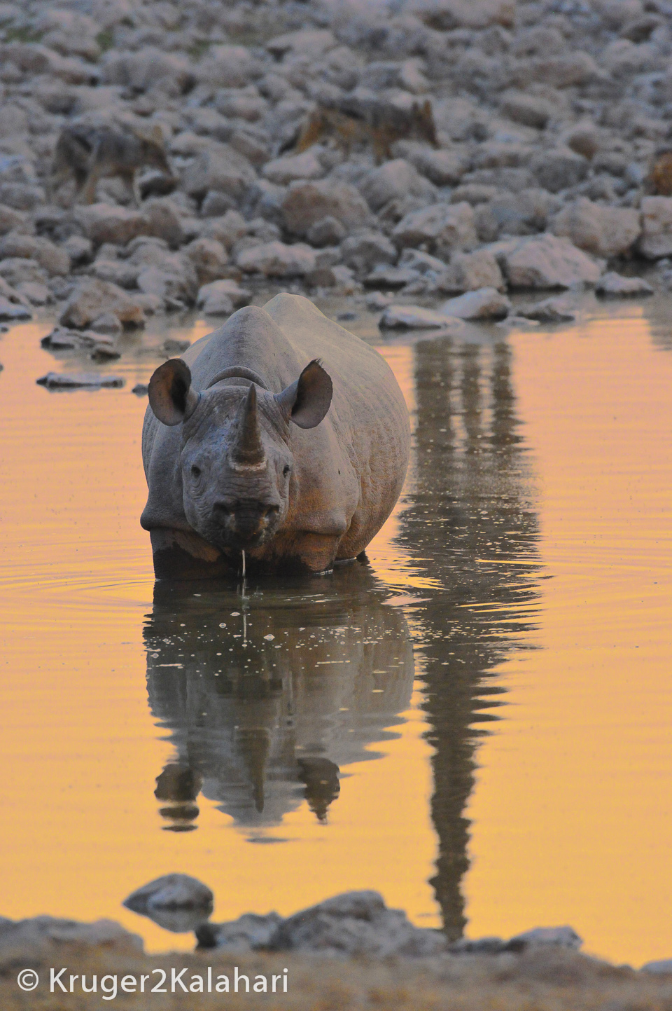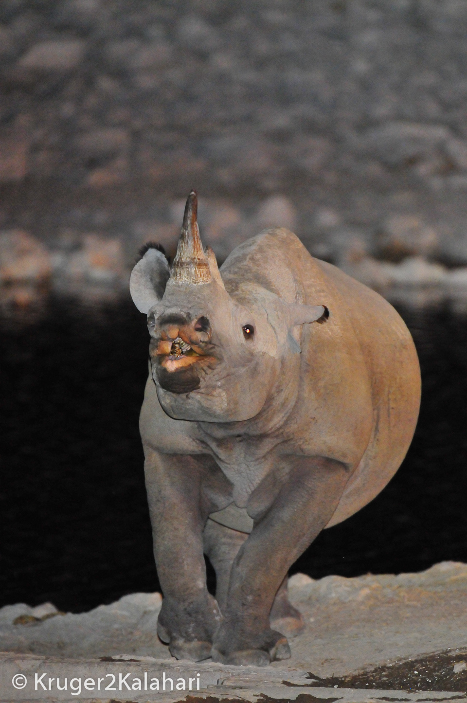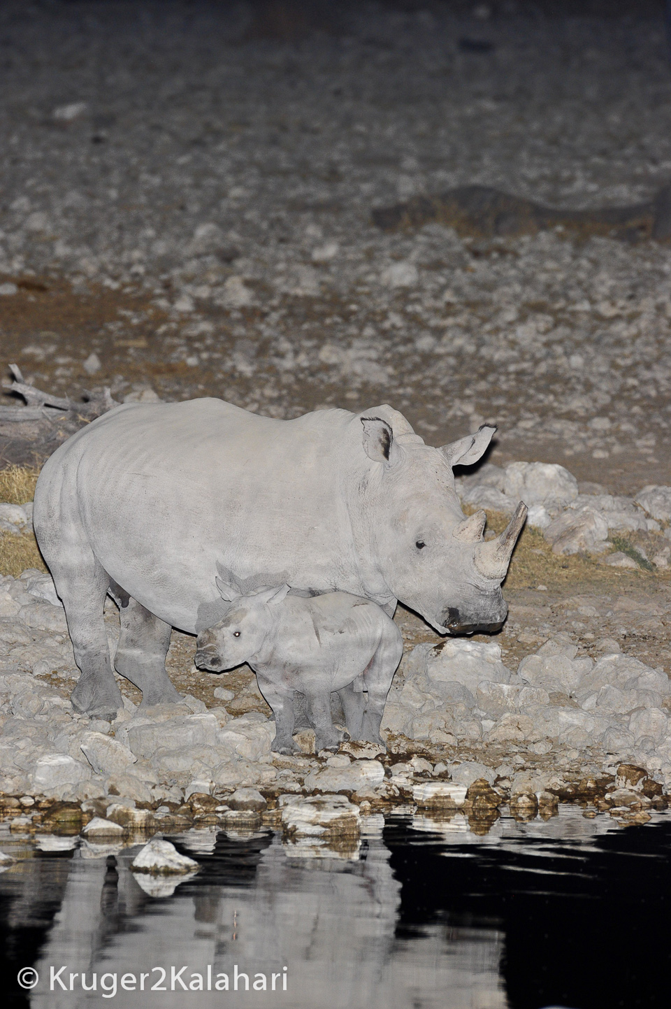 We have also had great sightings in Etosha, Madikwe and Pilanesberg of both rhinos. Etosha's black rhino sightings have mainly been at night at the camp waterholes, while in the Pilanesberg we have seen them by day. There are no rhinos in the Kgalagadi.