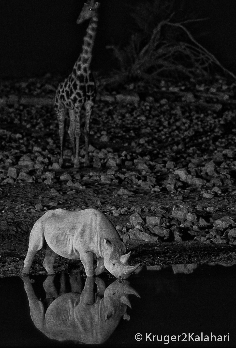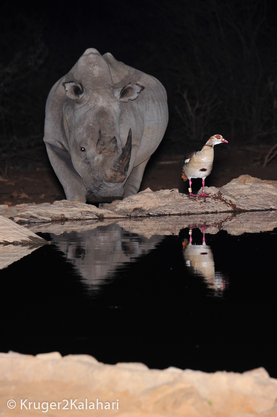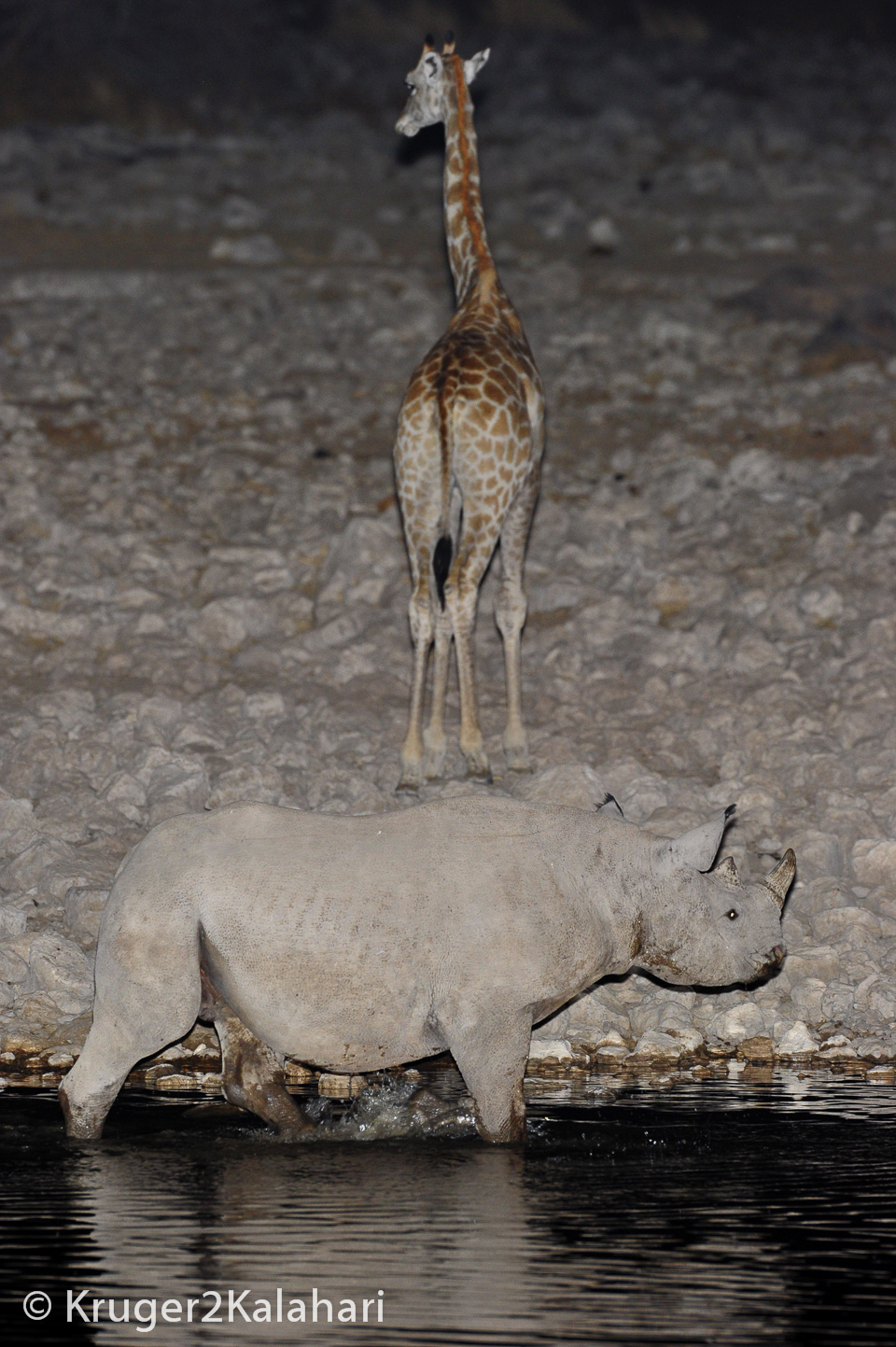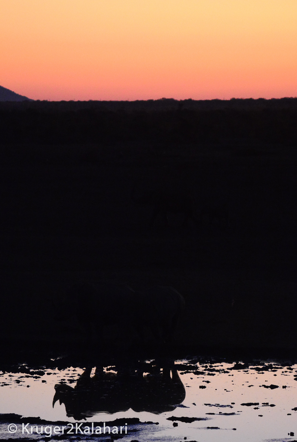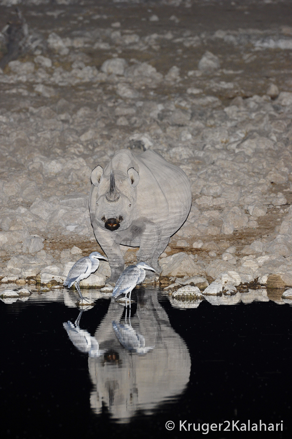 We have also had great sightings in Etosha, Madikwe and Pilanesberg of both rhinos. Etosha's black rhino sightings have mainly been at night at the camp waterholes, while in the Pilanesberg we have seen them by day. There are no rhinos in the Kgalagadi.