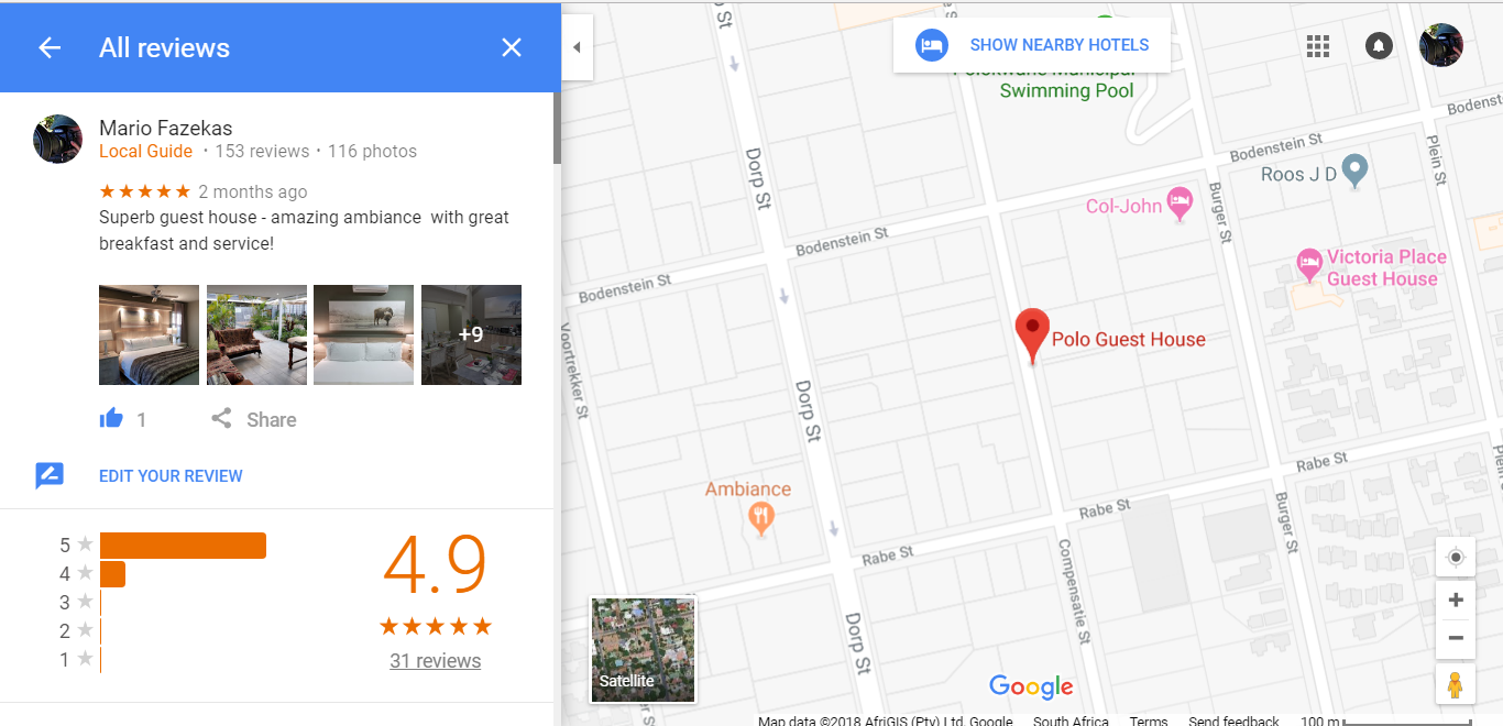 After returning home I reviewed the Guest House and the owners, Alet and Gertrude, sent me a WhatsApp message thanking me for the good review – they didn’t have to do that, but it shows professionalism, caring and pride in their establishment.