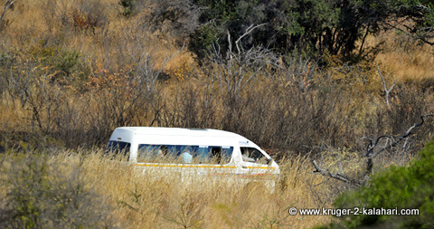 The grass in the Kgalagadi and Etosha does not grow as high as it does in the Kruger and Pilanesberg so the extra height of a 4X4 or Microbus is not as important.