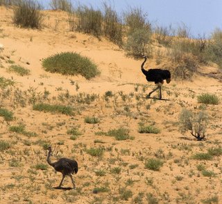 After about twenty minutes a family of ostriches came over the dunes...