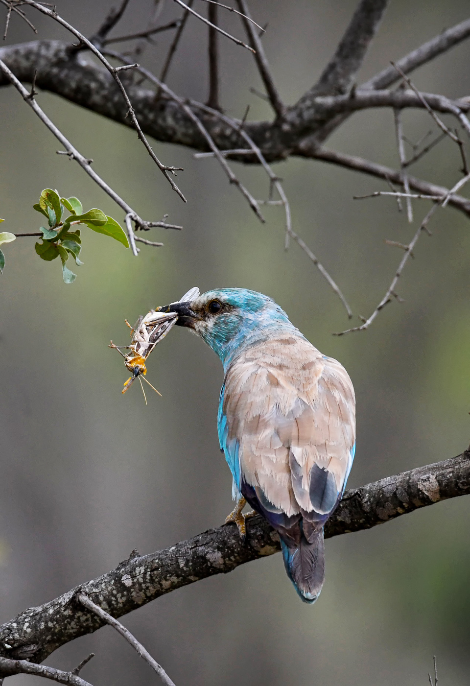 European Roller with grasshopper breakfast |